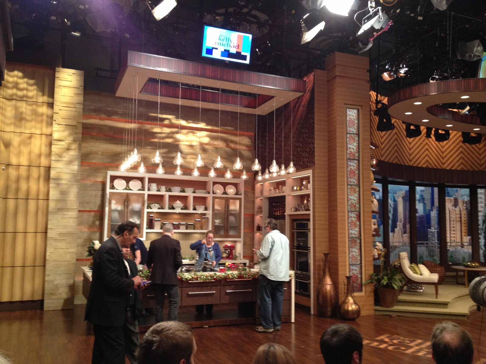 last thursday i had one of the best days that i experienced in awhile. i got to attend a taping of LIVE! with kelly & michael and the chew. months ago, my mom said that she wanted to go to a show taping for her birthday. i put in for a bunch of shows and heard nothing. my boss said she was going to request tickets for the chew and asked if i would be interested. well! my boss heard back from the chew and our date was 12/13. a couple of days later i got our confirmation letter in the mail from live for...yes you've guessed it..12/13. i laughed out loud and decided that on that thursday, my job would be to clap, cheer and be a seat filler for both of these tapings. mom, sam and i took a car into the city since we had to be in so early and waited on line for live. everyone who was waiting was just so friendly and excited. we met these adorable ladies from nashville who loved our accents they even asked us to sing happy birthday to one of their sons via phone. they also took a picture of us to remember us by. at 8:45am, they let you into the studio and you can sit wherever you want. the studio is so different looking from TV. it was so awesome. i love productions and how things are run...obviously i do..i went to school for it..but i just love sets and i love being a part of a production, even if it is just part of an audience. kelly and michael were super awesome. such genuine people, during segment breaks they would talk and hangout with the crowd. it's exactly how i wanted them to be. when the taping ended, i planned on walking down the block to wait on line for the chew. well, gelman, the producer of LIVE, told us to stay put, they had more filming to do. well, a bunch of people got up and left and we stayed put because mom and sam had nothing to do and i had time to kill before the chew. well, they announced that big stars were coming out and they were john travolta and olivia newton john. my mom and sam screamed so loud hahaha. it was pretty amusing. i got to stay to see them film a cooking segment with the love chef, but didn't get to see john and olivia. i had to leave to see the chew.